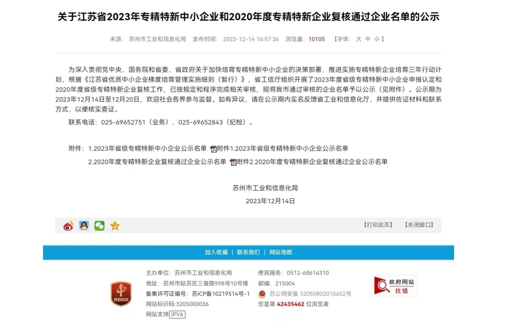 恭喜蘇州博睿通過江蘇省專精特新企業(yè)認定